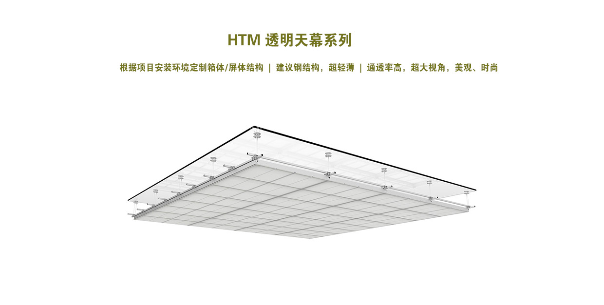 利用现代光学显示技术结合led研发生产技术,把众多的LED灯拼装成为一个可以显示视频、图像、文本等信息的图文显示屏,天幕透明屏是通过吊装的方式安装在楼层及建筑物的最顶层或者天花顶上,能够起到非常壮观和科幻的视觉效果,同时也能起到渲染、装饰、量化效果。